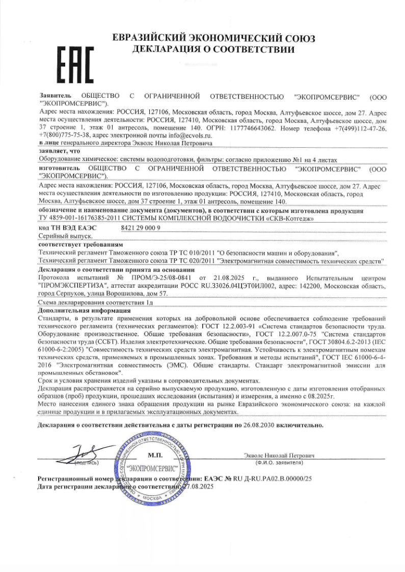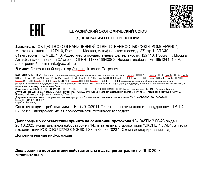 Все системы очистки воды Ecvols застрахованы в